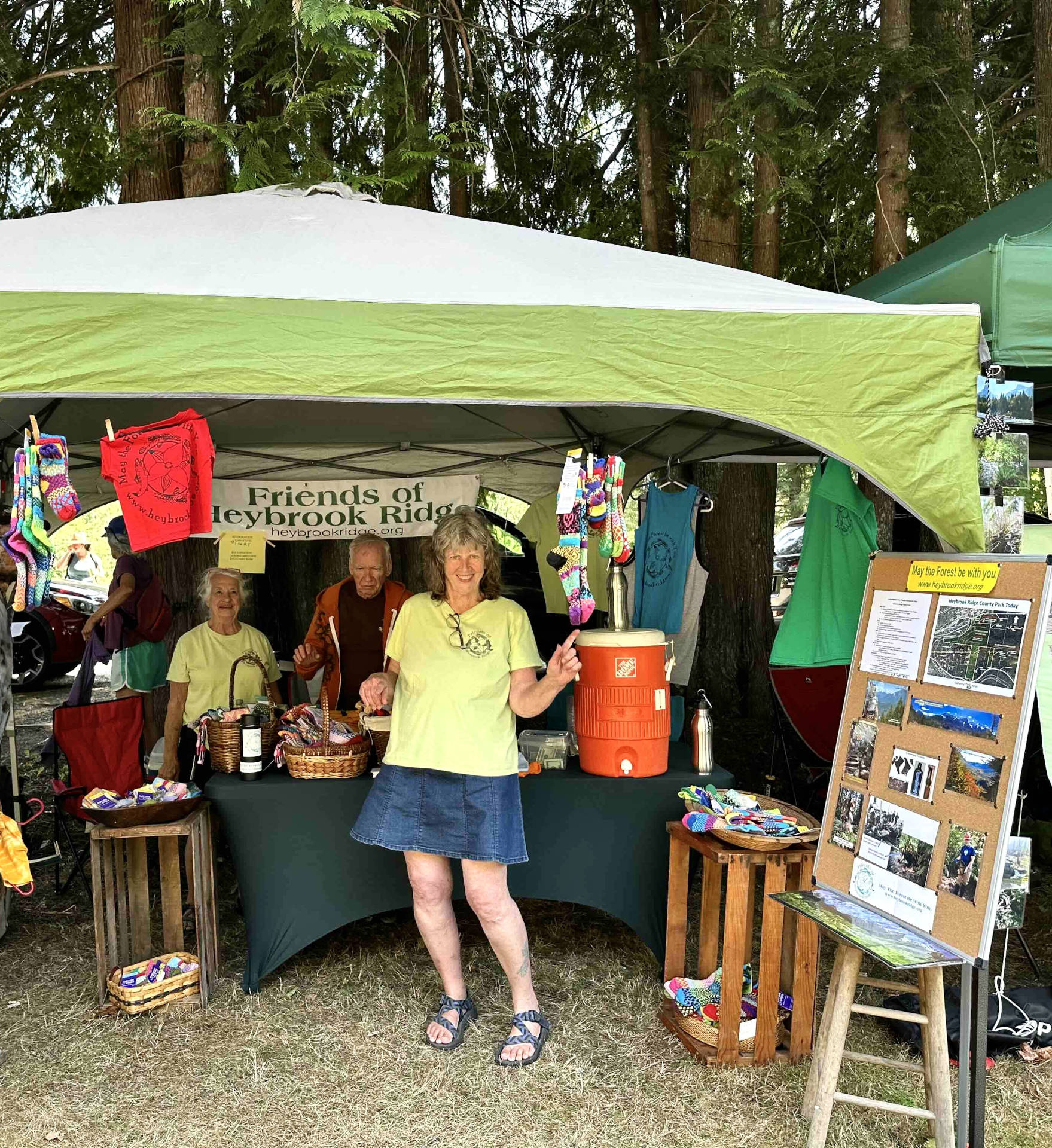 Sue Cross and Susan and Tom Susor staff the FOHR booth at the Index Arts Festival. Photo by Ann Darlington.