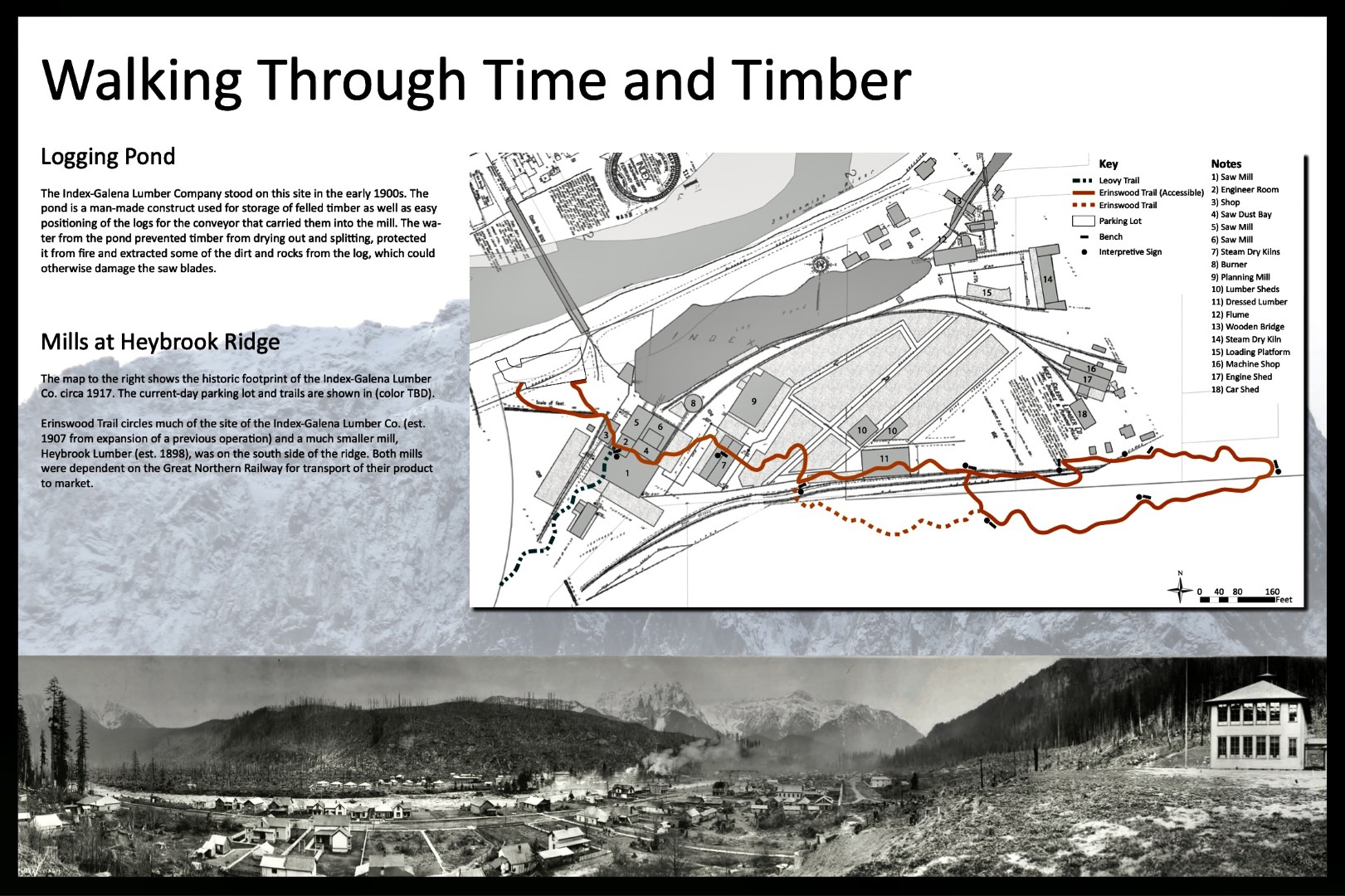 We are told by our contacts in Snohomish County Parks, Recreation and Tourism (SnoCo Parks) that completion of improvements for Erinswood and the parking area is targeted for the Spring of 2025. The pre-Covid Federal grant from the National Parks Service to finance this has been extended through June of 2025. SnoCo Parks continues the work necessary to obtain all the permits to comply with both ADA regulations and watershed protection rules. Meeting these has meant revisions of the earlier landscape architectural drawings for the approximately 2/3 mile-long, lollipop-shaped trail. Permits will be done by the end of this year, and then bids for construction work will go out. That work will include widening the trail and surfacing it with layered compressed rock suitable for wheelchairs and walkers, two tarred parking spaces in the parking lot, and an enclosed “portable” toilet. (A vault toilet isn't possible due to watershed contamination risk.)